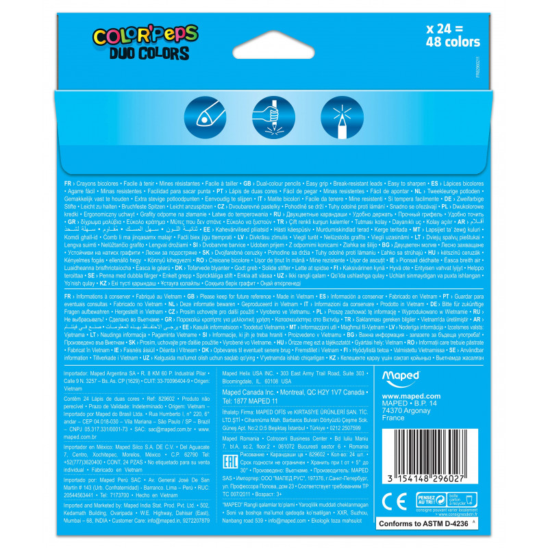 Etui de 24 crayons de couleur Color'Peps Duo Colors, double mine, couleurs assorties (24)