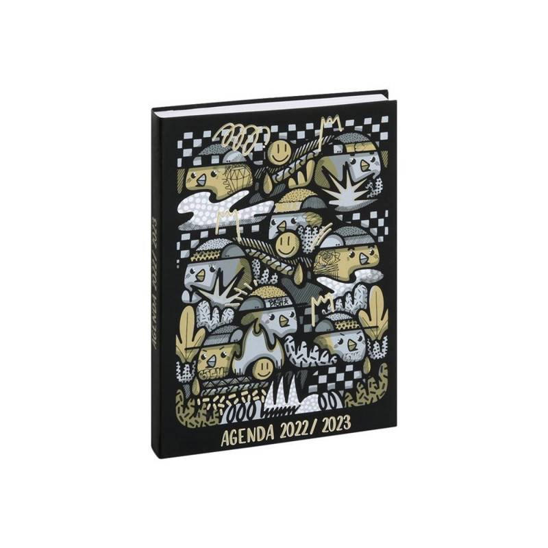 Bishop Parigo, de son vrai nom Nicolas Poirier, est un artiste parisien spécialisé dans l’univers contemporain urbain. Il évolue dans un monde coloré où le sourire y est roi, et l’insouciance le maître. Au cours de ces 10 dernières années, l’artiste a su évoluer sans jamais changer, ce qui lui a permis de travailler aux côtés de grands noms comme Flik Flak, Eastpak et aujourd’hui Exacompta! Agenda 1 jour par page la semaine et 2 jours par page pour le week-end. Couverture cartonnée souple et rembordée avec un pelliculage mat anti-rayures et un vernis brillant relief. Reliure brochée cousue pour une plus grande solidité.