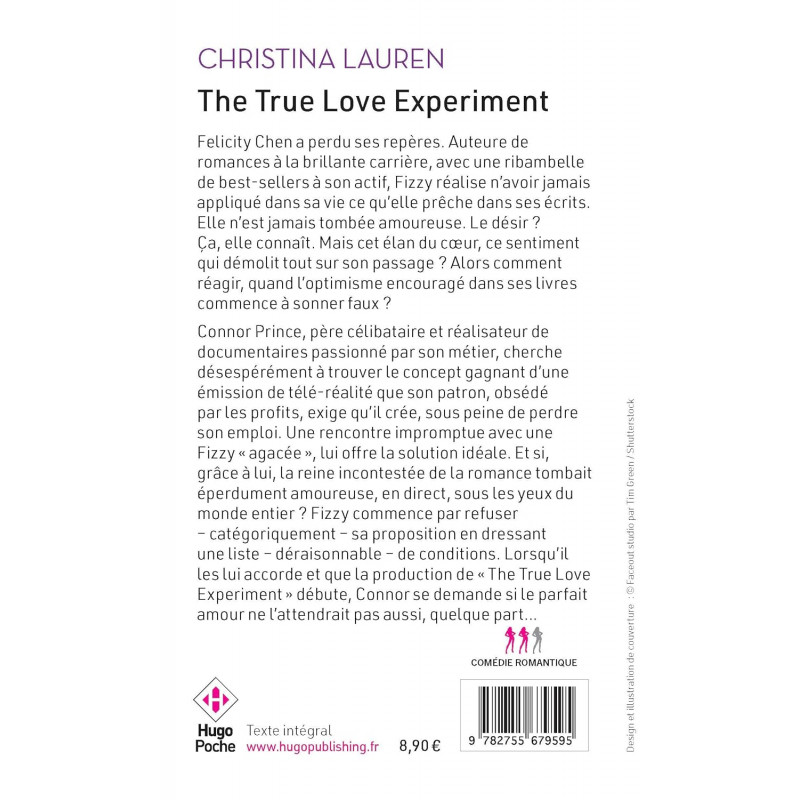 Felicity Chen a perdu ses repères. Auteure de romances à la brillante carrière, avec une ribambelle de best-sellers à son actif, Fizzy réalise n'avoir jamais appliqué dans sa vie ce qu'elle prêche dans ses écrits. Elle n'est jamais tombée amoureuse. Le désir ? Ca, elle connaît. Mais cet élan du coeur, ce sentiment qui démolit tout sur son passage ? Alors comme… Felicity Chen a perdu ses repères. Auteure de romances à la brillante carrière, avec une ribambelle de best-sellers à son actif, Fizzy réalise n'avoir jamais appliqué dans sa vie ce qu'elle prêche dans ses écrits. Elle n'est jamais tombée amoureuse. Le désir ? Ca, elle connaît. Mais cet élan du coeur, ce sentiment qui démolit tout sur son passage ? Alors comment réagir, quand l'optimisme encouragé dans ses livres commence à sonner faux ? Connor Prince, père célibataire et réalisateur de documentaires passionné par son métier, cherche désespérément à trouver le concept gagnant d'une émission de télé-réalité que son patron, obsédé par les profits, exige qu'il crée, sous peine de perdre son emploi. Une rencontre impromptue avec une Fizzy "agacée", lui offre la solution idéale. Et si, grâce à lui, la reine incontestée de la romance tombait éperdument amoureuse, en direct, sous les yeux du monde entier ? Fizzy commence par refuser - catégoriquement - sa proposition en dressant une liste - déraisonnable - de conditions. Lorsqu'il les lui accorde et que la production de "The True Love Experiment" débute, Connor se demande si le parfait amour ne l'attendrait pas aussi, quelque part...
