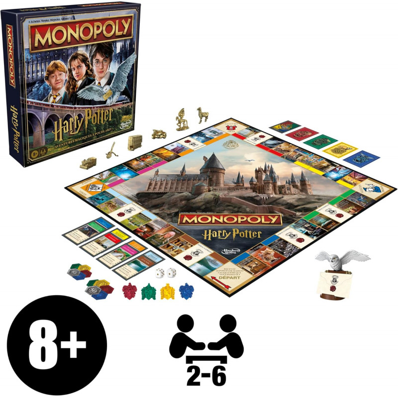 • Bienvenue à Poudlard ! Les joueurs incarnent un élève dans le jeu de société Monopoly Harry Potter, qui combine le classique Monopoly avec des illustrations, des lieux et le thème du monde sorcier.