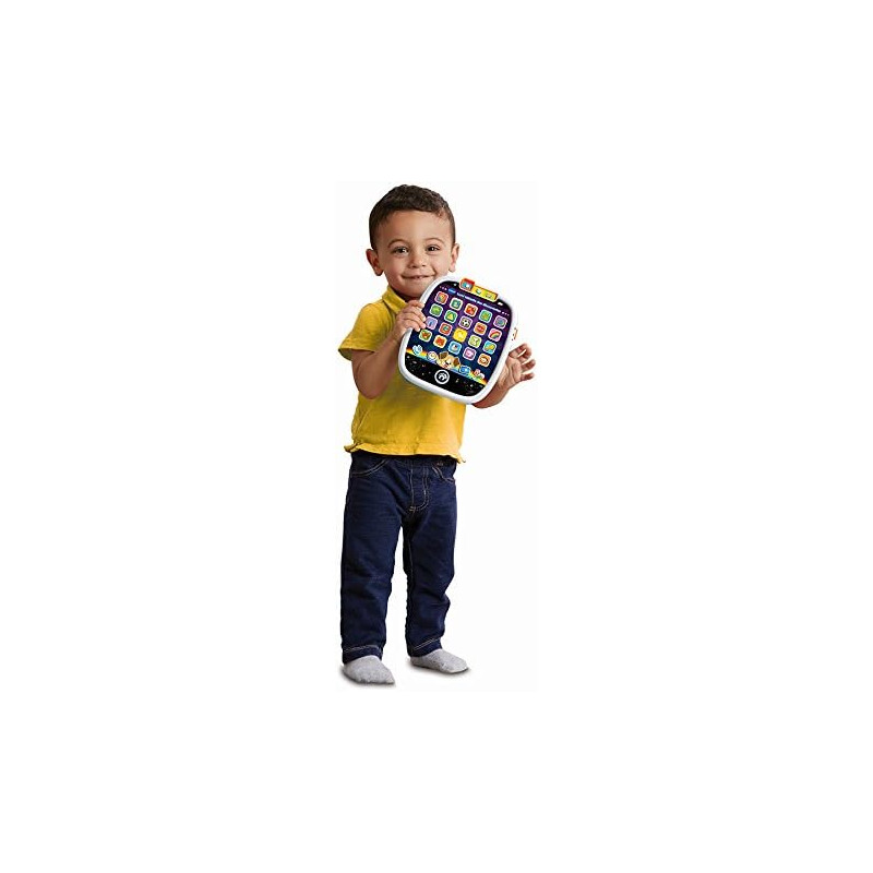 La première tablette de bébé pour jouer à imiter papa et maman. 25 touches tactiles dont 20 lumineuses pour faire le plein de découvertes: les chiffres de 1 à 10, les formes, l'alphabet en chanson, les animaux, découvrir le temps qu'il fait, écouter son ami le chien parler. Le petit chien guide bébé dans ses découvertes, lui raconte des histoires et l'encourage. Un bouton maison lumineux pour déclencher des sons rigolos et des phrases amusantes. 3 modes de jeux: découverte, apprentissage et musique. 20 mélodies et 3 chansons accompagnent bébé dans ses découvertes. Réglage du volume sonore et arrêt automatique. Fonctionne avec 3 piles LR03 fournies.