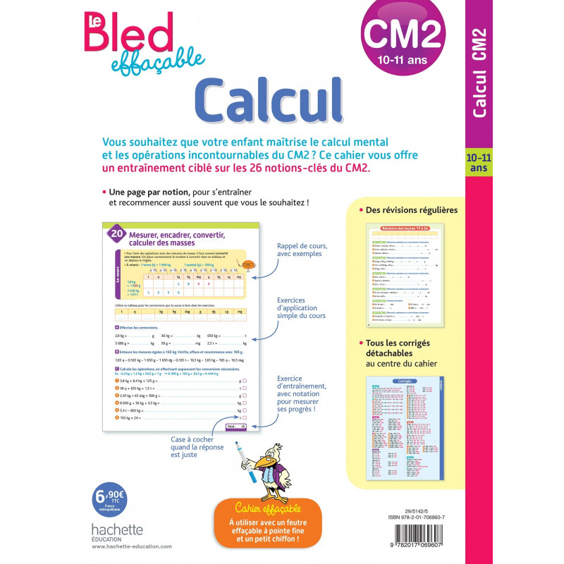 Le Bled effaçable Calcul CM2 Edition 2019 - Grand Format - De 10 à 11 ans
