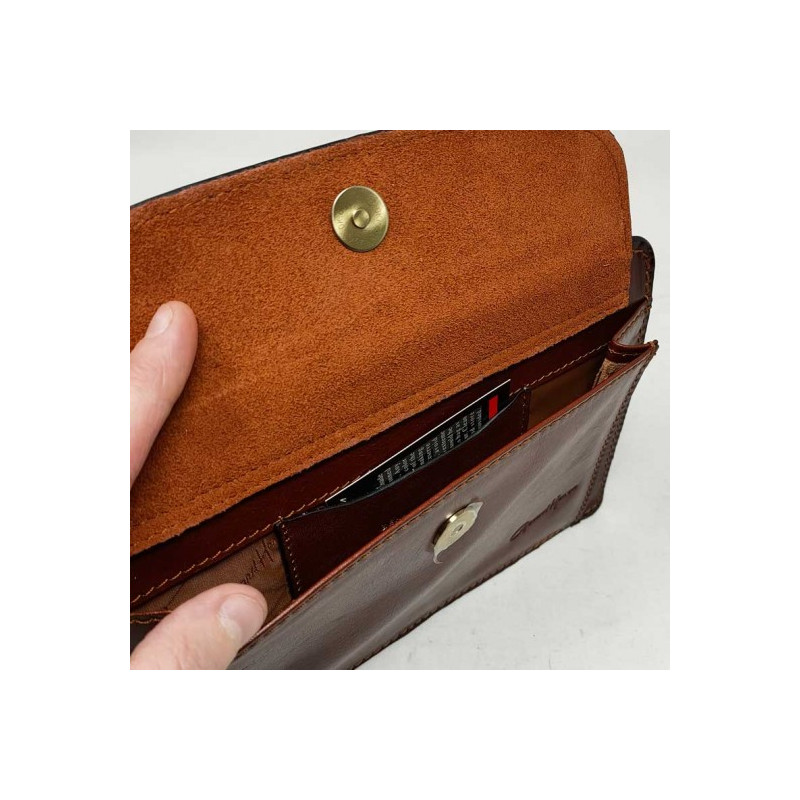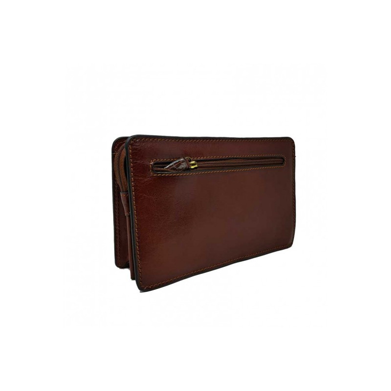 Vide poche a glissière 2 soufflets cuir vachette gras choco