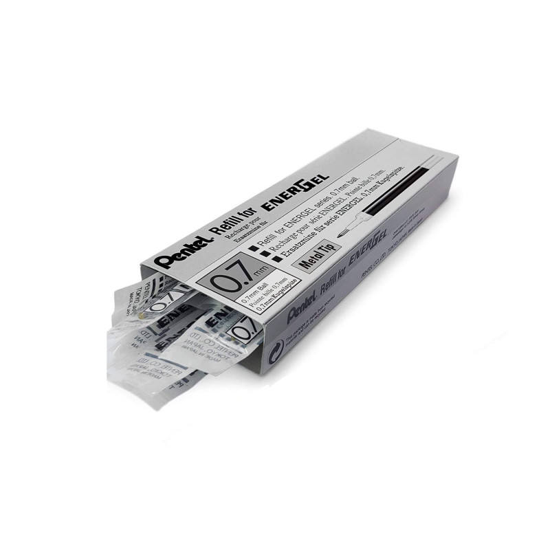 Boite de 12 recharges LRP7 pour roller encre gel permanant Energel Pentel BLP77. Bille 0,7mm, écriture moyenne. Encre permanente infalsifiable de couleur noire, conforme à la norme ISO 27668-2. Résistant à l'eau, la lumière, et au temps. Idéal pour la rédaction de documents officiels. Séchage rapide.