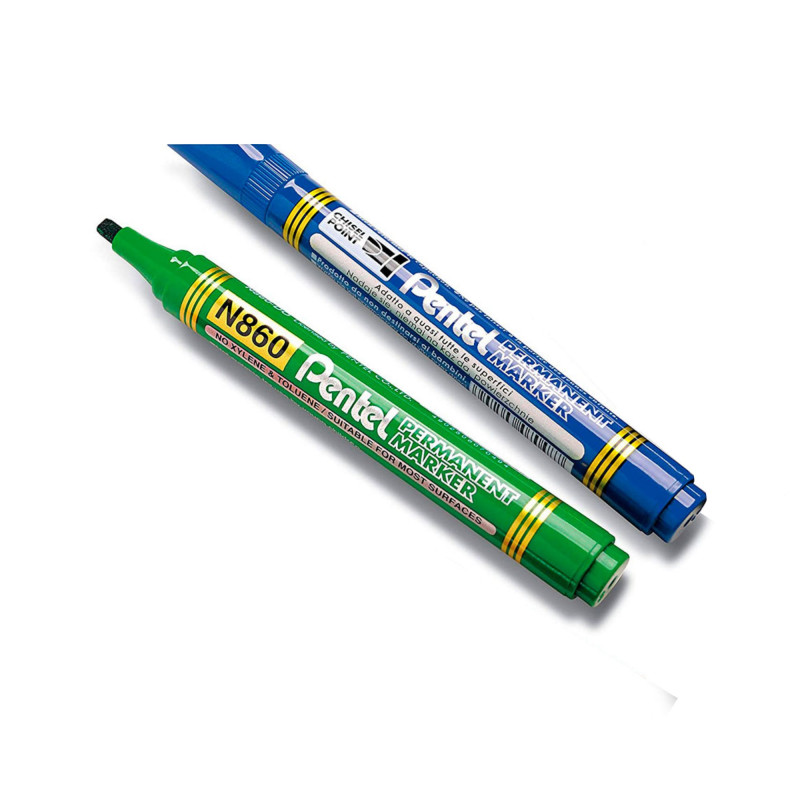 Pentel N860-CE - Marqueurs permanents pointe biseautée moyenne - Bleu
