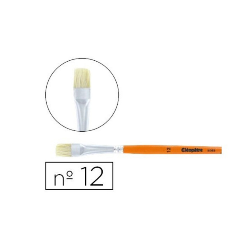 Brosse Cléopâtre N°12 Soie de Porc. Conçus avec l'aide d'un spécialiste européen des pinceaux, nous vous proposons un large panel de brosses plates fabriquées avec des poils de soie de Porc, ils sont fabriqués à partir de bois certifié FSC® de la catégorie de matériaux FSC 100%. Les viroles des pinceaux sont conformes à la norme EN71.3 et sont régulièrement testées. Nous utilisons également de l'aluminium recyclé à 40-50%. Les poils ont une excellente tenue à l'eau et à la peinture, ils permettent de peindre avec une très grande précision. Le manche est protégé avec un vernis protecteur. La dureté des poils permet de réaliser des aplats avec des peintures très épaisses comme par exemple les gouaches en pâte. Ces pinceaux sont également adaptés pour peindre avec de la gouache liquide.