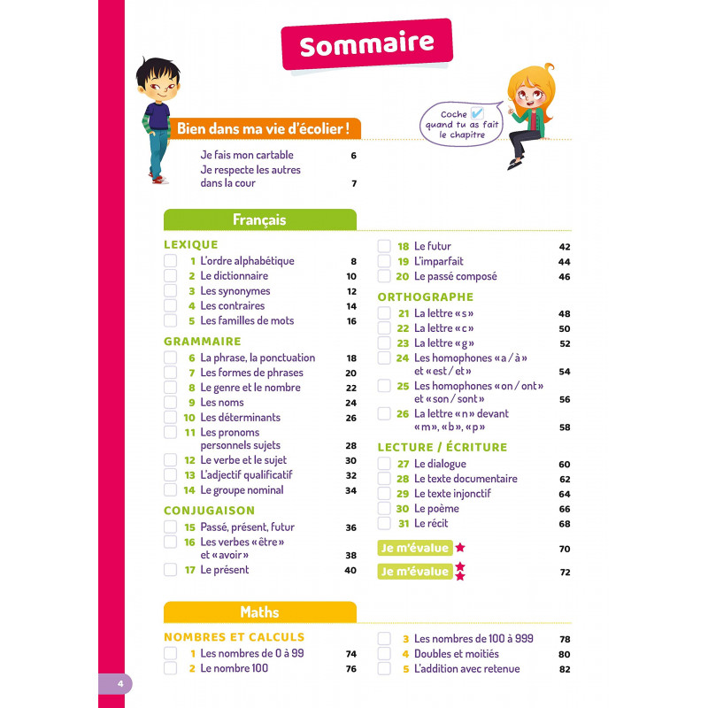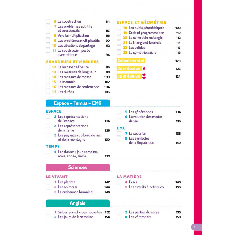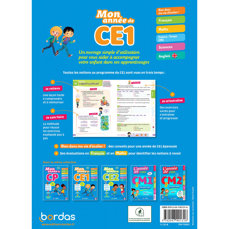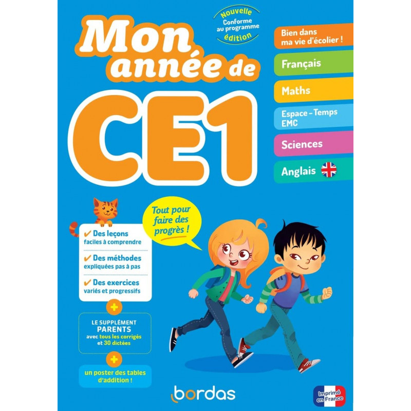 Mon Année de CE1 réunit toutes les matières du CE1 en un seul ouvrage pour accompagner votre enfant durant son année de CE1 et lui permettre d'approfondir les notions clés du programme scolaire. Mon année de CE1 est un ouvrage tout-en-un, qui permet à votre enfant de réviser toutes les matières de son année de CE1 : français, mathématiques, espace-Temps, EMC, sciences, anglais, mais aussi " bien dans sa classe ".