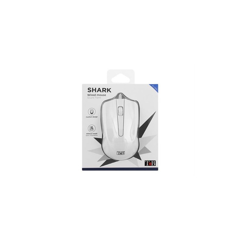 Souris optique filaire shark blanche. Parfaite pour une utilisation bureau avec sa forme ergonomique elle possède 2 boutons et un scroll cliquable La connexion se fait automatiquement : ...