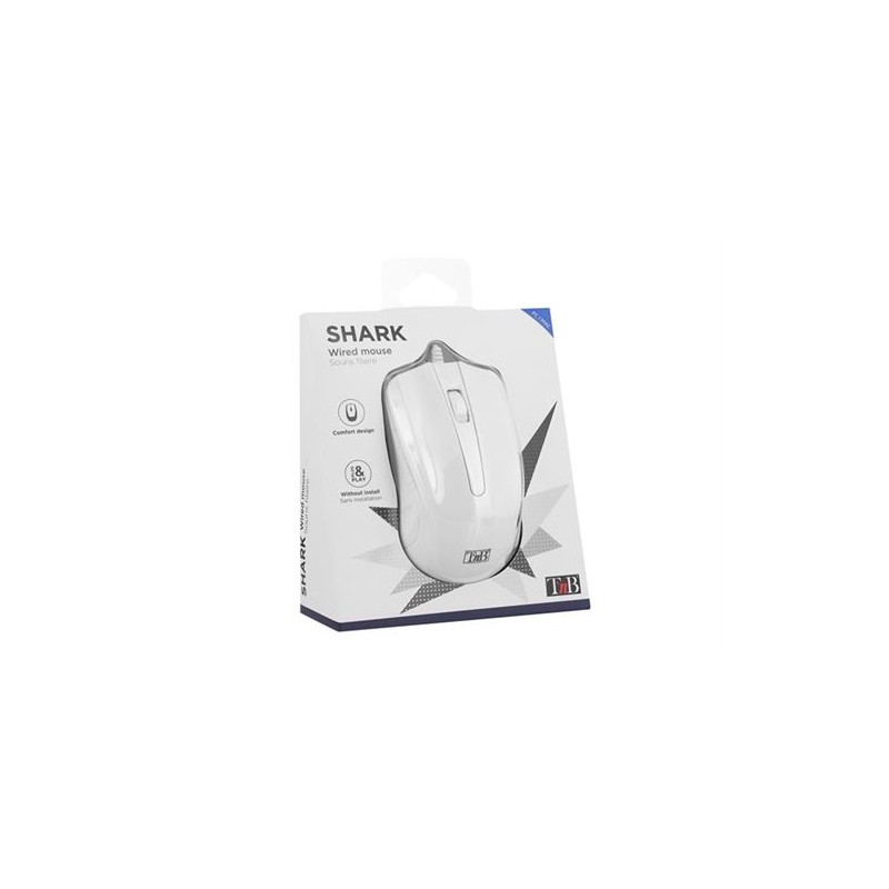 Souris optique filaire shark blanche. Parfaite pour une utilisation bureau avec sa forme ergonomique elle possède 2 boutons et un scroll cliquable La connexion se fait automatiquement : plug and play ! Compatible PC - Mac