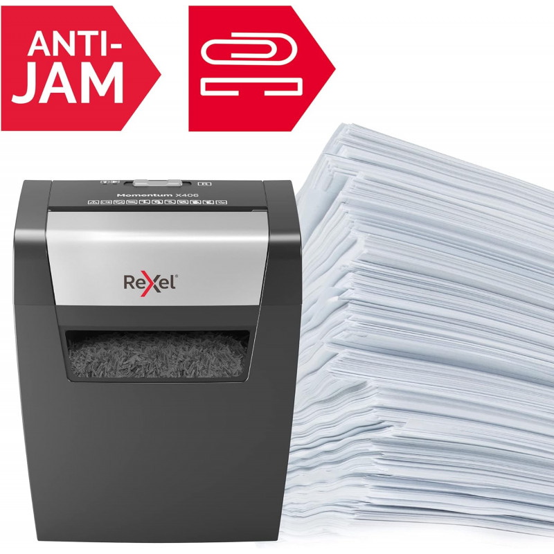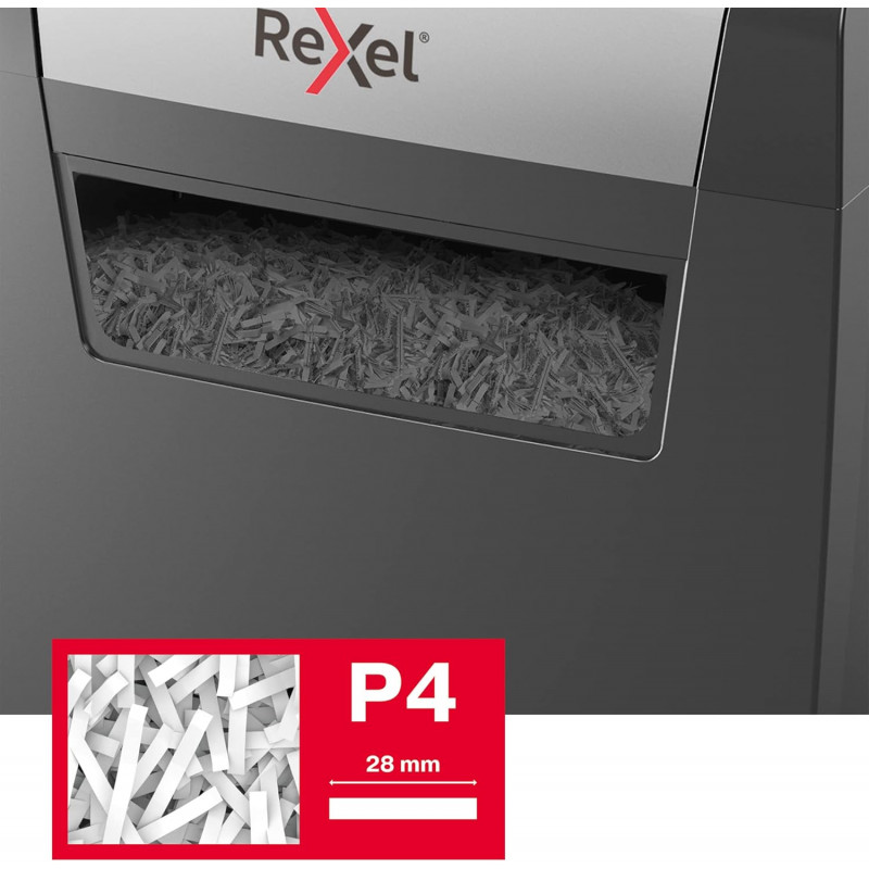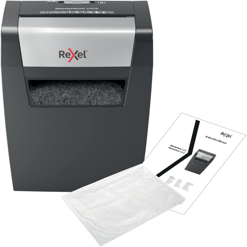 Le pouvoir de déchiqueter davantage! Le destructeur Rexel Momentum X406 peut détruire jusqu'à 6 feuilles en une fois, avec un temps de fonctionnement continu de 3 minutes, ce qui le rend idéal pour un usage domestique. Coupe croisée P4 en morceaux de 4x30 mm. Corbeille avec une capacité de 15L (125 feuilles A4).