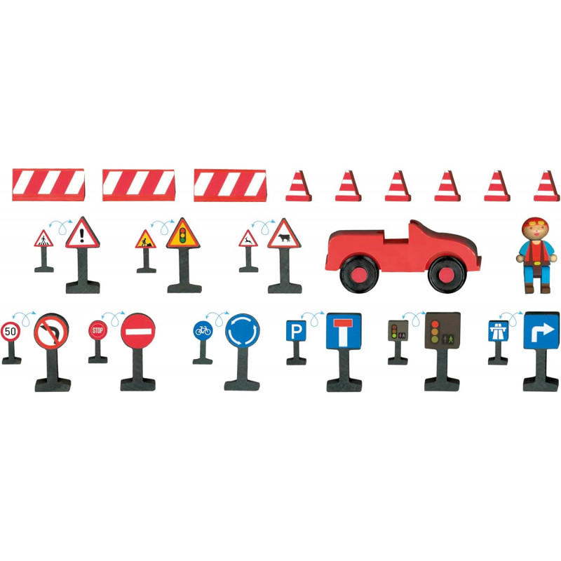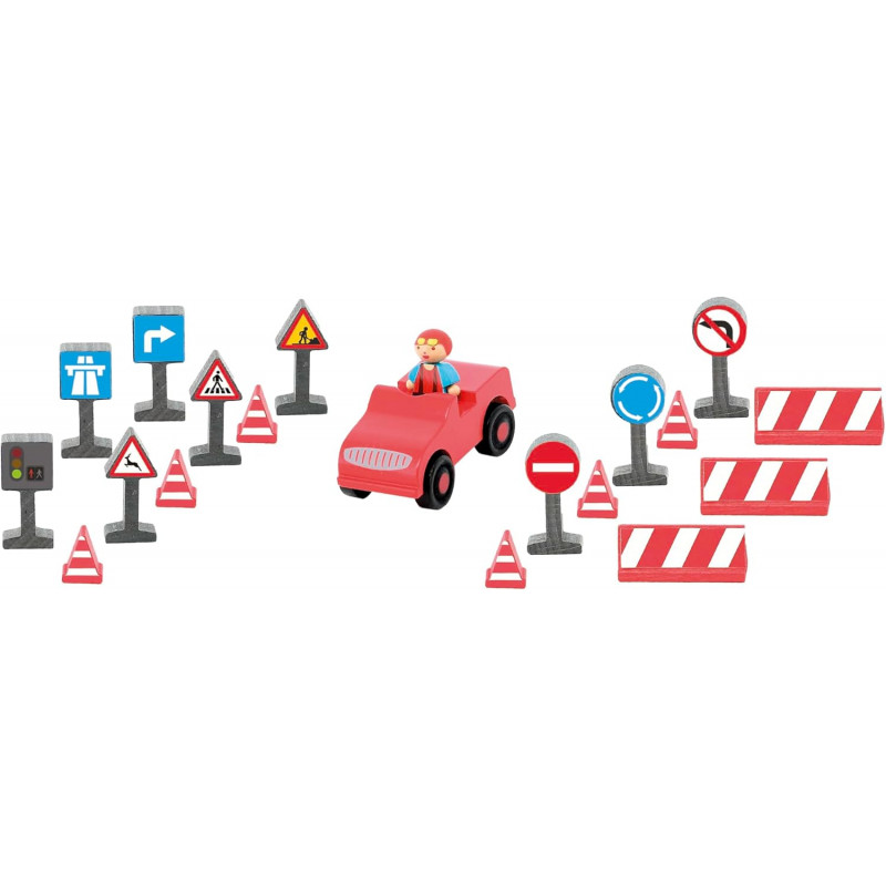 - Panneaux de voiture et de circulation - 20 morceaux de bois : une voiture, un personnage, des panneaux routiers et routiers. Compatible avec toute la gamme Jeujura. Favorise le développement des habiletés motrices et de la dextérité des enfants.