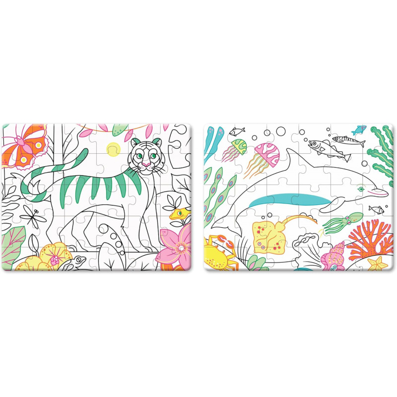 Une pochette pour colorier 4 magnifiques puzzles ! Une jolie pochette qui propose 4 puzzles d'animaux à colorier. Feutres ou crayons de couleurs : tout est possible !