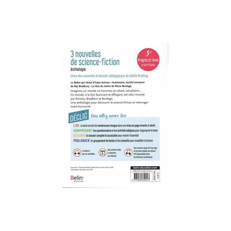 Le Robot qui rêvait d'Isaac Asimov Automates, société anonyme de Ray Bradbury La Voix du matin de Pierre Bordage Imaginez un monde où les robots seraient dotés d'un subconscient et pourraient rêver ; un monde dans lequel des doubles mécaniques pourraient prendre notre place ; un monde où l'homme serait réveillé, nourri, lavé et habillé par une intelligence domotique... Ce monde, à la fois fascinant et effrayant, dans lequel hommes et robots cohabitent est celui inventé par Asimov, Bradbury et Bardage.