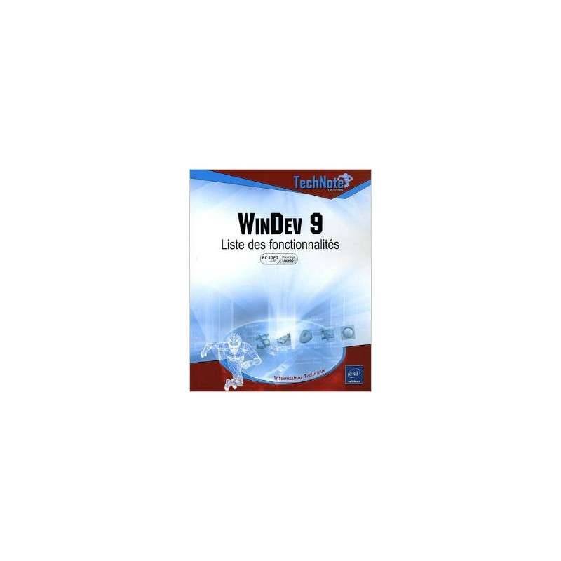 "Donne une vision complète des fonctionnalités de WinDev 9 et montre l'étendue de chaque fonction. Aborde notamment l'environnement, les centres de création, le L5W, W-Langage, Hyper File, le RAD, les autres bases de données, XML natif, WinDev AS/400, la création de l'exécutable et les centres de contrà´le.