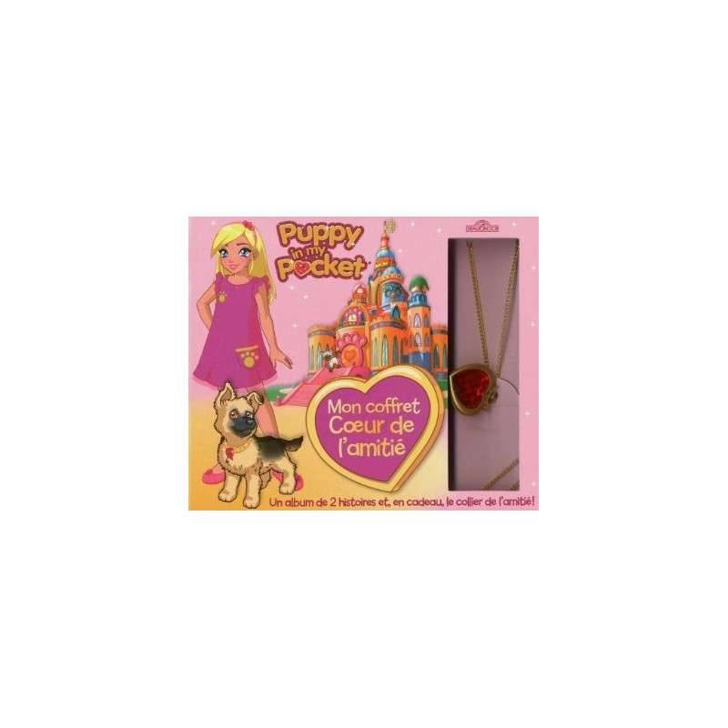 Tu trouveras dans ton coffret un bel album réunissant les deux premières aventures de Flo et Magic, les héros de Puppy In My Pocket. La première histoire retrace la rencontre de nos deux héros et la deuxième, leur première mission ensemble. Ton coffret t'offre également le véritable pendentif de la série : le cœur de l'amitié ! Un vrai collier à mettre autour de ton cou, pour revivre les aventures de la princesse Ami l !