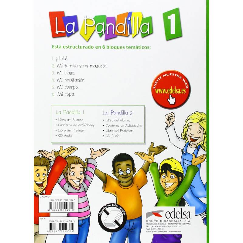 La Pandilla 1 (A1) est une méthode d'espagnol comme langue étrangère pour les enfants entre 6 et 10 ans. Pack comprenant le livre de l'élève et le cahier d'exercices. Il est structuré en 6 blocs thématiques, de 5 unités chacun, qui tiennent compte des centres d'intérêt des étudiants : 1. Bonjour ! 2. Ma famille et mon animal de compagnie. 3. Ma classe. 4. Ma chambre et mes jouets. 5. Mon corps. 6. Mes vêtements Chacun d'eux est travaillé sur quatre leçons et une unité de révision. Voici quelques-uns des éléments communs à tous les blocs : chaque leçon est présentée sur une double page de contenu associé. Tous les blocs comportent une ou deux chansons et un ou plusieurs jeux. La cinquième leçon est une unité de révision qui comprend : "Le rideau s'ouvre", une bande dessinée dont le personnage principal est le Ratoncito Pérez et que les élèves pourront représenter. "Mes documents. Dossiers ouverts", récapitulatif des contenus travaillés.