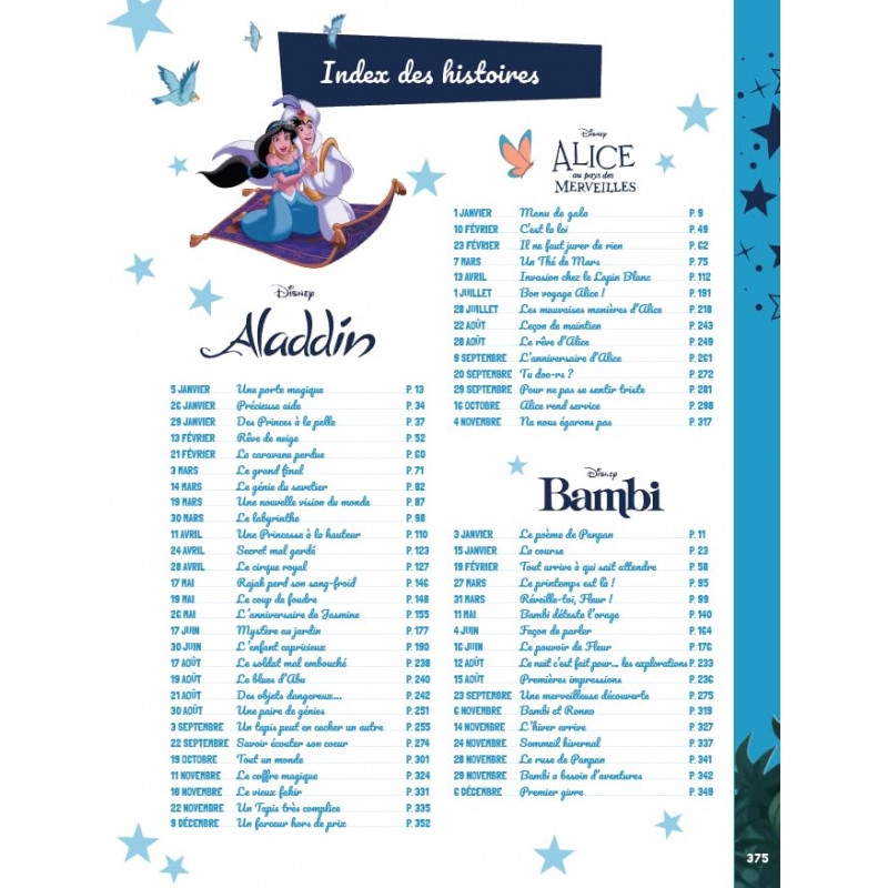 Les plus belles histoires des Grands Classiques Disney pour rêver tous les soirs de l'année ! Un magnifique recueil en grand format qui réunit 365 histoires Disney, soit une pour chaque jour de l'année ! Grâce à sa maquette aérée et ses jolies illustrations, cet album est idéal pour voyager et découvrir les merveilleuses aventures des célèbres personnages Disney. Un moment d'évasion que l'enfant peut partager avec les parents ou expérimenter de son côté dans une lecture en autonomie.