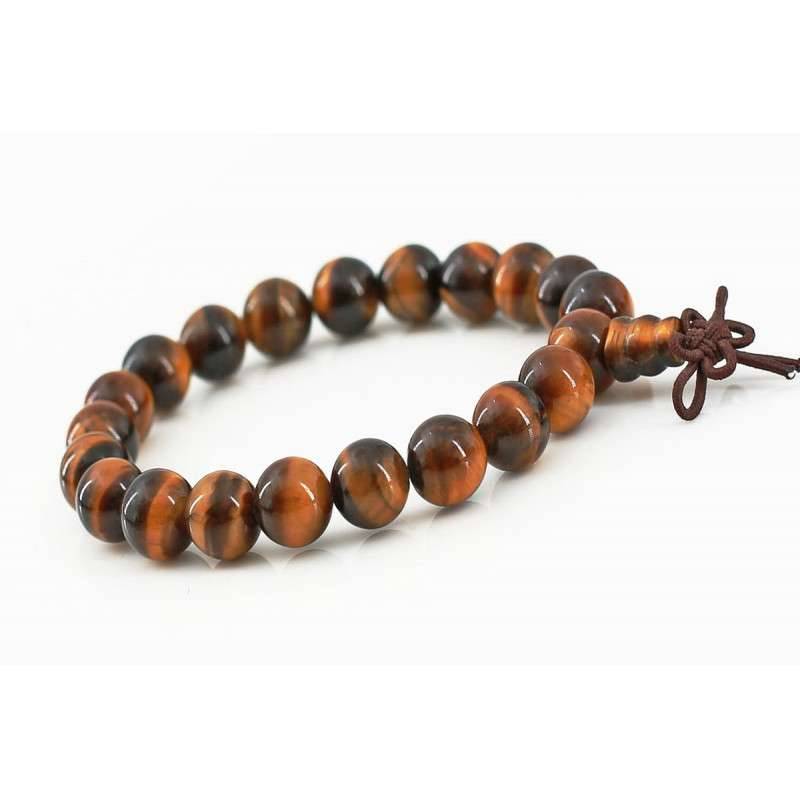 Bracelet mala en œil de tigre Omsaé [DESCRIPTION] Bracelet élastique composé de perles en pierre d'œil de tigre. L'œil de tigre aide à la protection, les choix de vie et à éloigner le négatif. [CARACTÉRISTIQUES] Bracelet mala en pierre naturelle. Fil élastique marron. Composition du fil : polyester et caoutchouc. Diamètre du bracelet : 6 cm. Diamètre des perles : 22 perles de 0,8 cm et 1 perle de tête de 1 cm avec connecteur. [PACKAGING] Cavalier brochab
