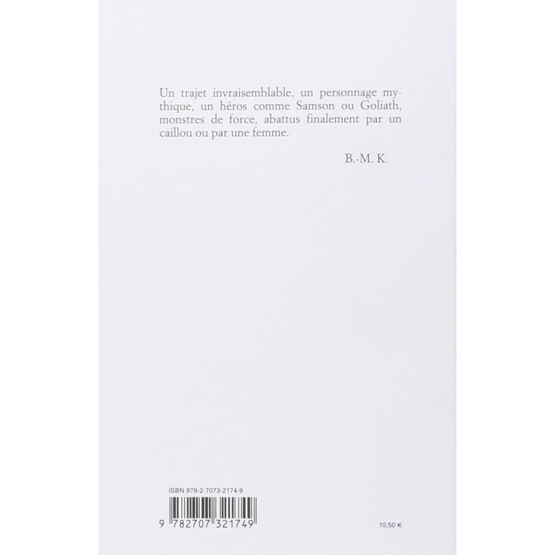 Un trajet invraisemblable, un personnage mythique, un héros comme Samson ou Goliath, monstres de force, abattus finalement par un caillou ou par une femme. Roberto Zucco est paru en 1990.