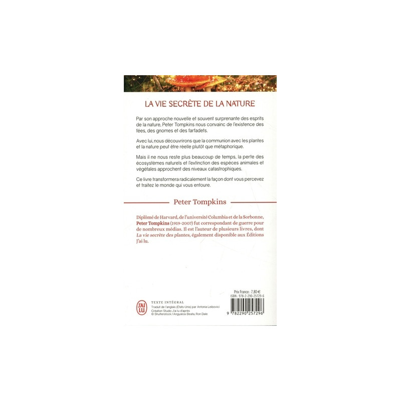 Par son approche nouvelle et souvent surprenante des esprits de la nature, Peter Tompkins nous convainc de l'existence des fées, des gnomes et des farfadets. Avec lui, nous découvrirons que la communion avec les plantes et la nature peut être réelle plutôt que métaphorique. Mais il ne nous reste plus beaucoup de temps, la perte des écosystèmes naturels et l'extinction des espèces animales et végétales approchent des niveaux catastrophiques.