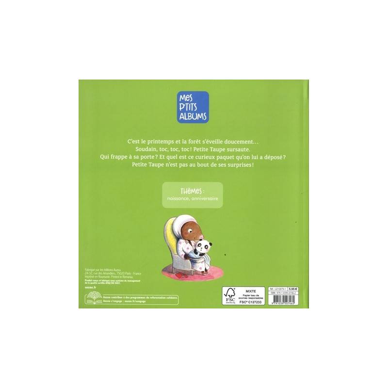 C'est le printemps et la forêt s'éveille doucement... Soudain, toc, toc, toc ! Petite Taupe sursaute. Qui frappe à sa porte ? Et quel est ce curieux paquet qu'on lui a déposé? Petite Taupe n'est pas au bout de ses surprises !