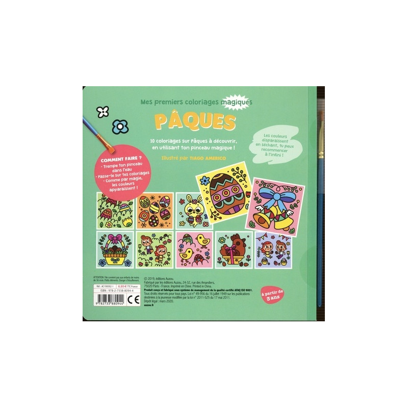 10 coloriages sur le Pâques à découvrir, en utilisant ton pinceau magique ! Comment faire ? Trempe ton pinceau dans l'eau ; passe-le sur tes coloriages ; comme par magie, les couleurs apparaissent ! Les couleurs disparaissent en séchant, tu peux recommencer l'infini !