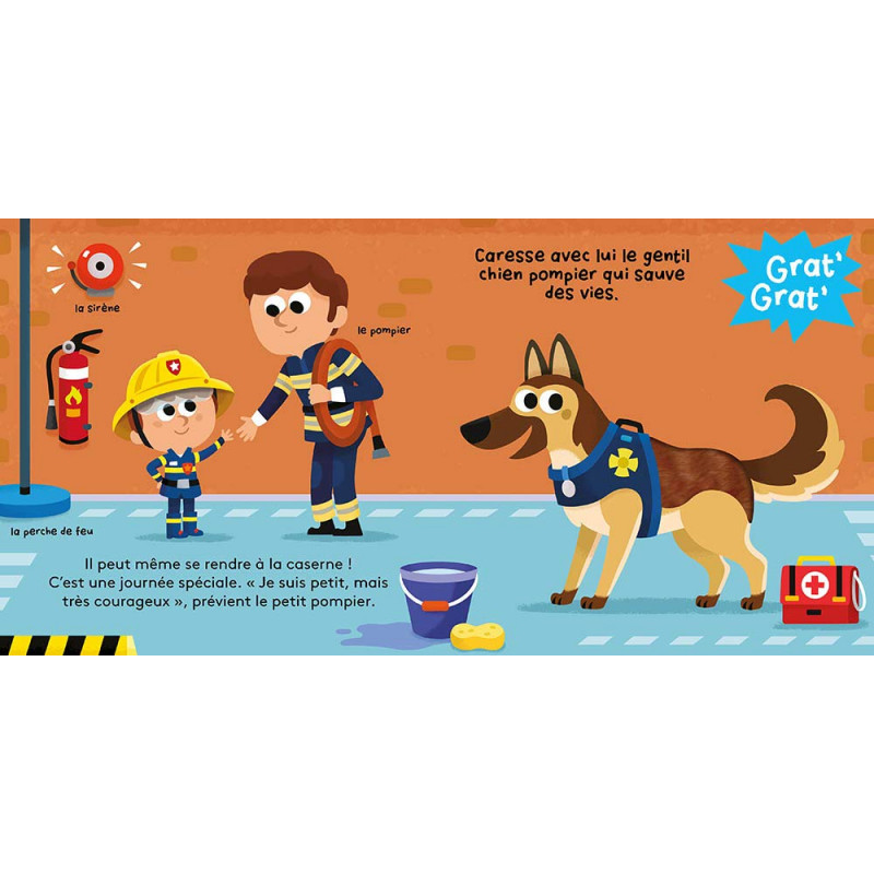 Une chouette histoire, un imagier et une belle matière à toucher à chaque page ! Découvre l'histoire d'un enfant qui rêve de devenir pompier.
