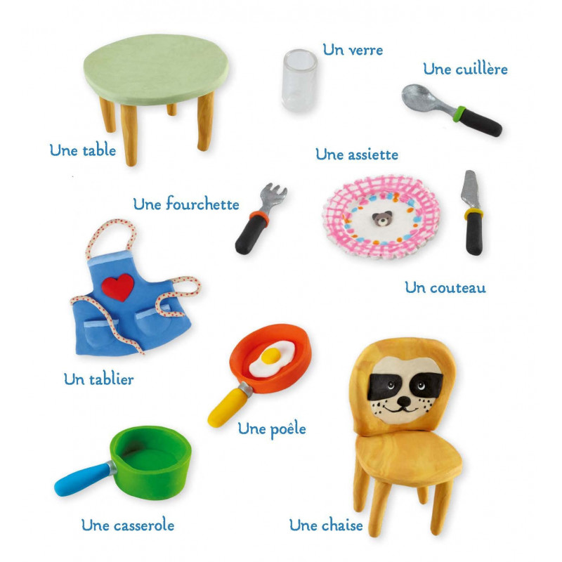Un imagier illustré de créations en pâte à modeler pour découvrir les pièces de la maison et apprendre à nommer les objets.