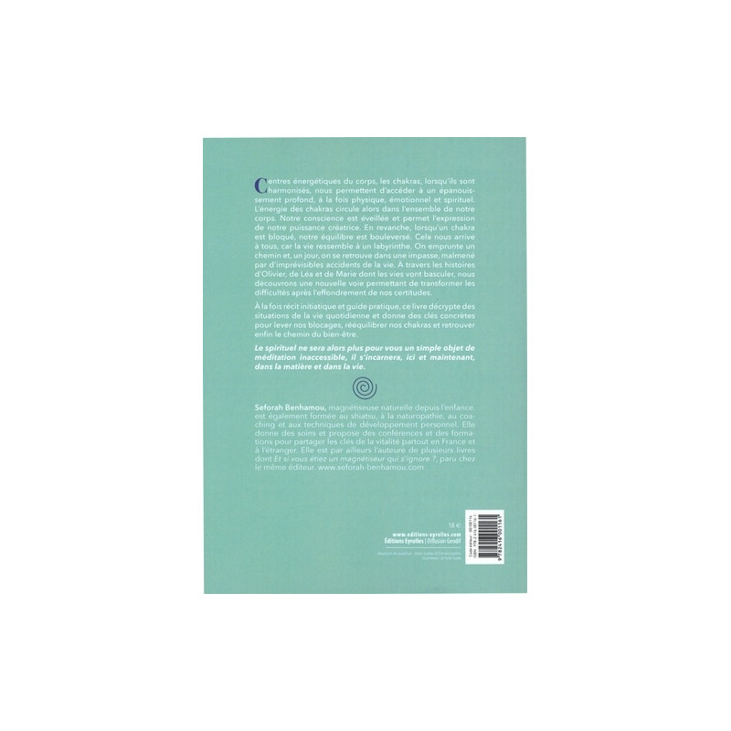 Centres énergétiques du corps, les chakras, lorsqu'ils sont harmonisés, nous permettent d'accéder à un épanouissement profond, à la fois physique, émotionnel et spirituel. L'énergie des chakras circule alors dans l'ensemble de notre corps. Notre conscience est éveillée et permet l'expression de notre puissance créatrice. En revanche, lorsqu'un chakra est bloqué, notre équilibre est bouleversé. Cela nous arrive à tous, car la vie ressemble à un labyrinthe.