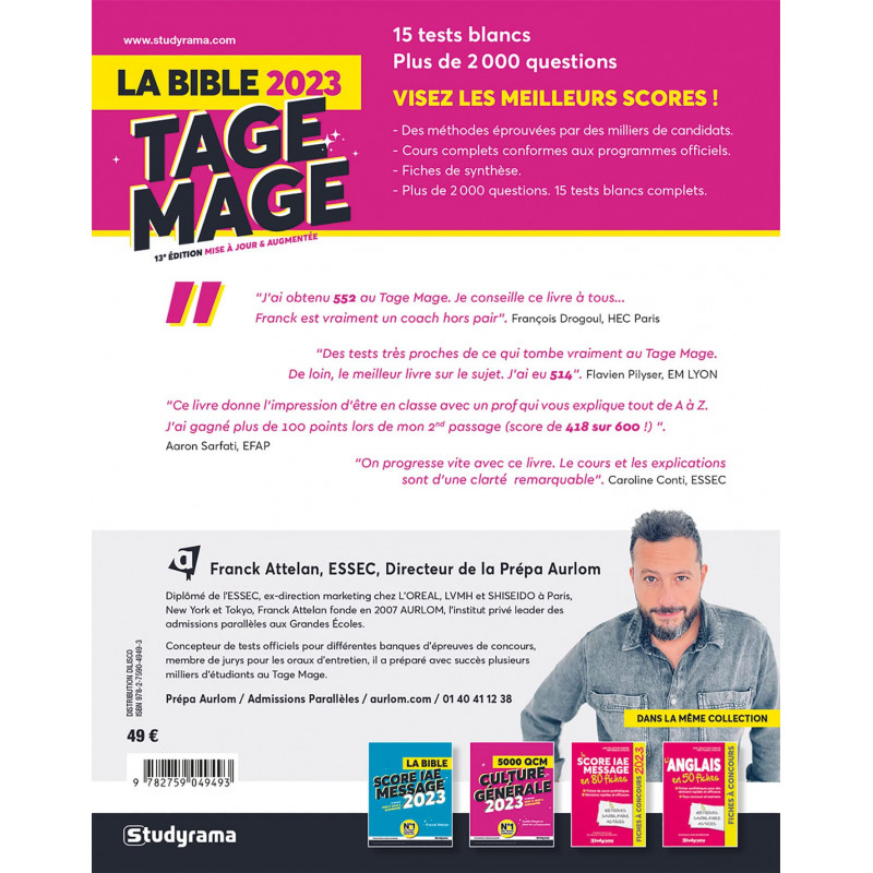 Numéro 1 des ventes, la Bible du Tage Mage est l'ouvrage indispensable pour vous préparer au Tage Mage. La Bible du Tage Mage® est l'ouvrage de référence qui vous accompagnera tout au long de votre préparation au Tage Mage®. Vous y trouverez 15 tests blancs complets. Au total : plus de 2 500 questions et applications-clés... De quoi progresser rapidement dans chacune des 6 épreuves du Tage Mage® et espérer ainsi terminer parmi les premiers !