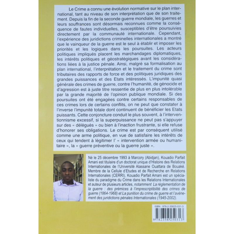 Le Crime a connu une évolution normative sur le plan international, tant au niveau de son interprétation que de son traitement. Depuis la fin de la seconde guerre mondiale, les guerres et leurs souffrances sont désormais reconnues comme la conséquence de fautes individuelles, susceptibles d'être poursuivies directement par la communauté internationale. Cependant, l'expérience des juridictions criminelles internationales a montré que le vainqueur de la guerre est le seul à établir et imposer les priorités et les logiques dans les poursuites. Les acteurs politiques impliqués placent les marchandages diplomatiques, les intérêts politiques et géostratégiques avant les considérations liées à la justice pénale. Ainsi, malgré sa formalisation au plan international, l'interprétation et le traitement du crime sont tributaires des rapports de force et des politiques juridiques des grandes puissances et des Etats intéressés. L'impunité quasi générale des crimes de guerre, contre l'humanité, de génocide et d'agression est à juste titre ressentie de plus en plus intolérable par la grande majorité de l'opinion publique mondiale. Si des poursuites ont été engagées contre certains responsables de ces crimes lors de certains conflits, on ne peut que constater à l'inverse l'impunité totale dont continuent de bénéficier les Etats puissants. Cette conjoncture conduit le plus souvent, à l'interventionnisme excessif, si la superpuissance ne peut pas s'appuyer sur des « délégués » ou bien à l'inaction frustrante, si elle refuse d'honorer ses obligations. Le crime est par conséquent utilisé comme une arme politique, en vue de satisfaire les intérêts de ceux qui tendent à légitimer I' « intervention armée ou humanitaire», la « guerre préventive ou la guerre juste ».
