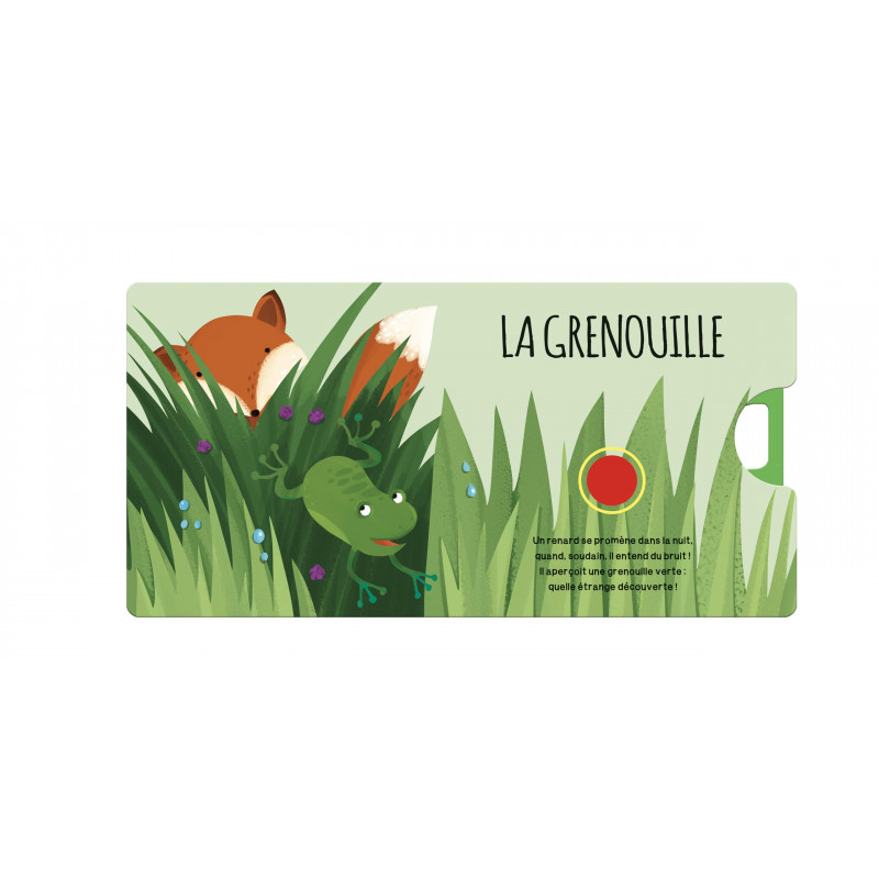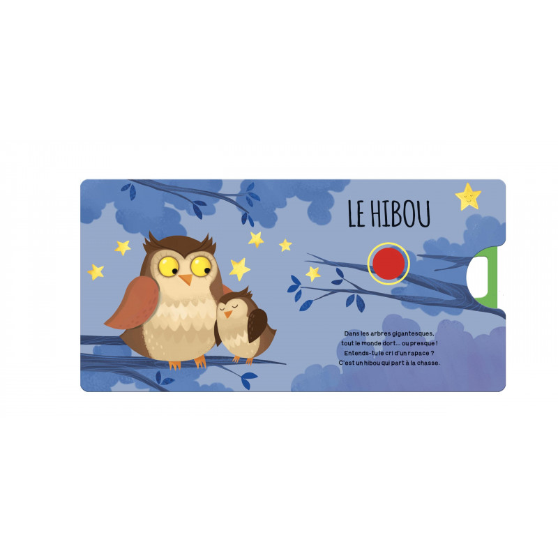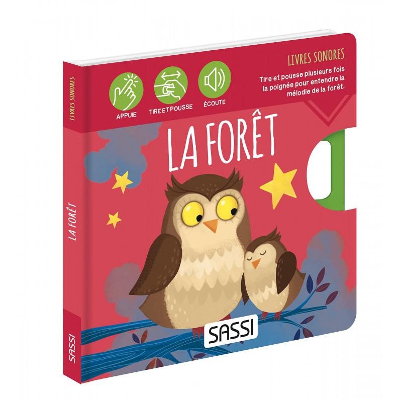 Un livre sonore pour apprendre à associer les images aux sons et stimuler l'apprentissage. Voici les animaux de la forêt. Lis leurs aventures, appuie sur les boutons et apprends à reconnaître leurs cris. Tire et pousse la poignée : une douce mélodie accompagnera ta lecture.