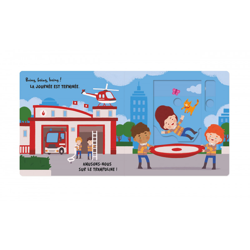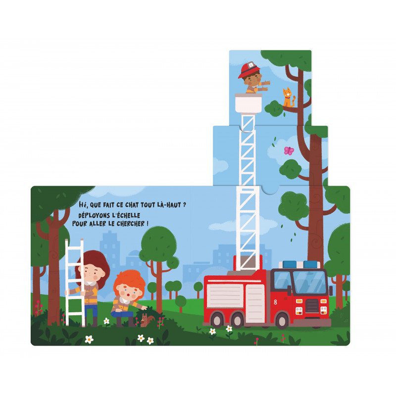 Les aventures amusantes d'un groupe d'amis... Chez les pompiers ! Soulevez les petites fenêtres, faites glisser les mécanismes et tirez les languettes. Le livre prendra vie en révélant de fantastiques surprises.