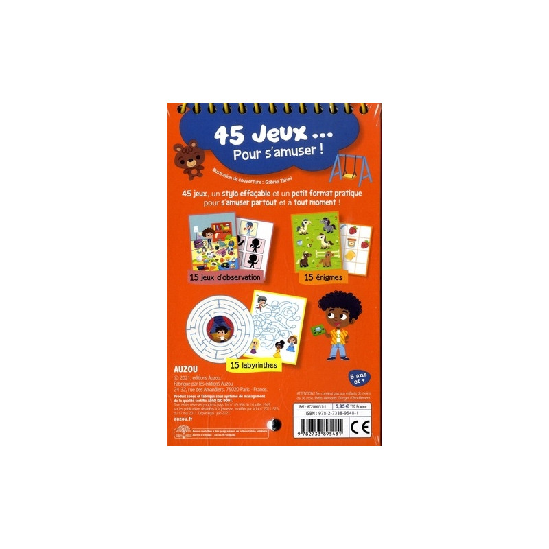 45 jeux... pour s'amuser ! - Avec un stylo effaçable - Album - Dès 5 ans