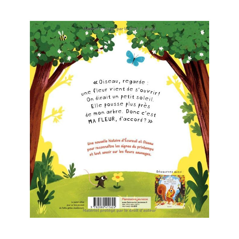"Oiseau, regarde : une fleur vient de s'ouvrir ! On dirait un petit soleil. Elle pousse plus près de mon arbre. Donc c'est MA FLEUR, d'accord ? "Une nouvel le histoire d'Ecureuil et Oiseau pour reconnaître les signes du printemps et tout savoir sur les fleurs sauvages.