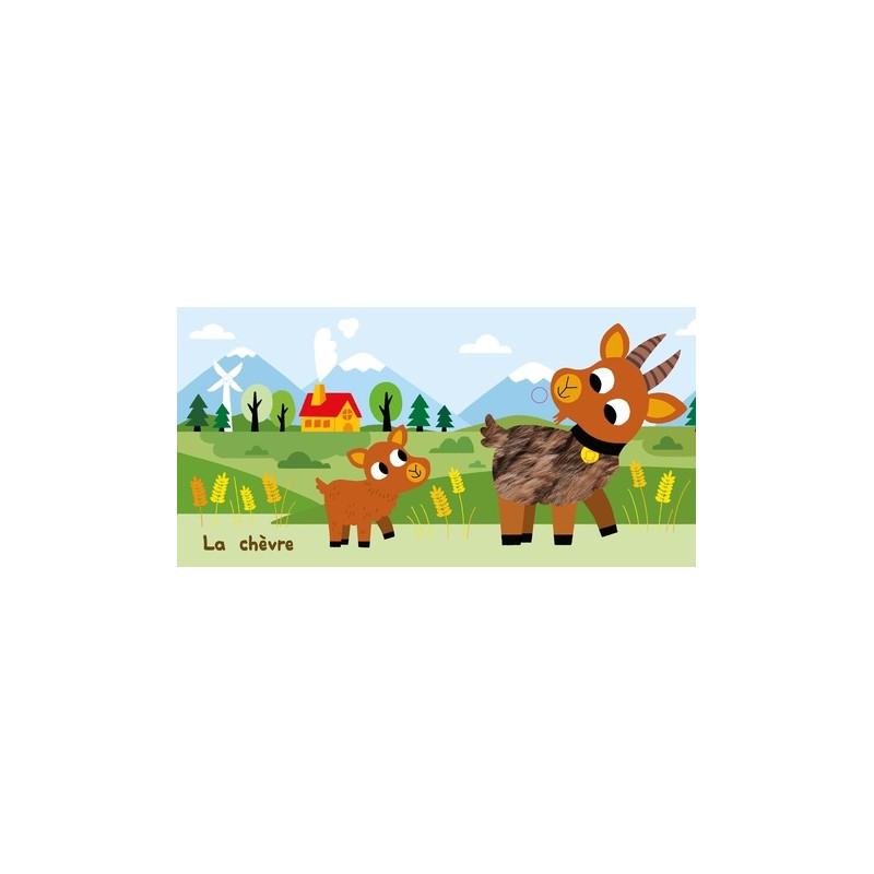 1 image ; 1 matière ; 1 son. De vrais sons, de belles matières à toucher pour éveiller les sens des tout-petits ! La chèvre, le cochon, l'âne, la poule, la vache.