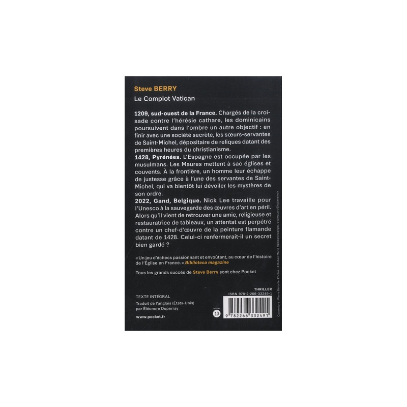 1428, Pyrénées. L'Espagne est occupée par les musulmans. Alors que les troupes chrétiennes regagnent du terrain, les Maures mettent à sac églises et couvents et s'en prennent aux voyageurs qui essaient de passer en France. A la frontière, un homme leur échappe de justesse grâce à l'une des servantes de Saint-Michel, qui va bientôt lui dévoiler les mystères de son ordre. 2022, Gand, Belgique. Nick Lee travaille pour l'Unesco à la sauvegarde des œuvres d'art en péril.