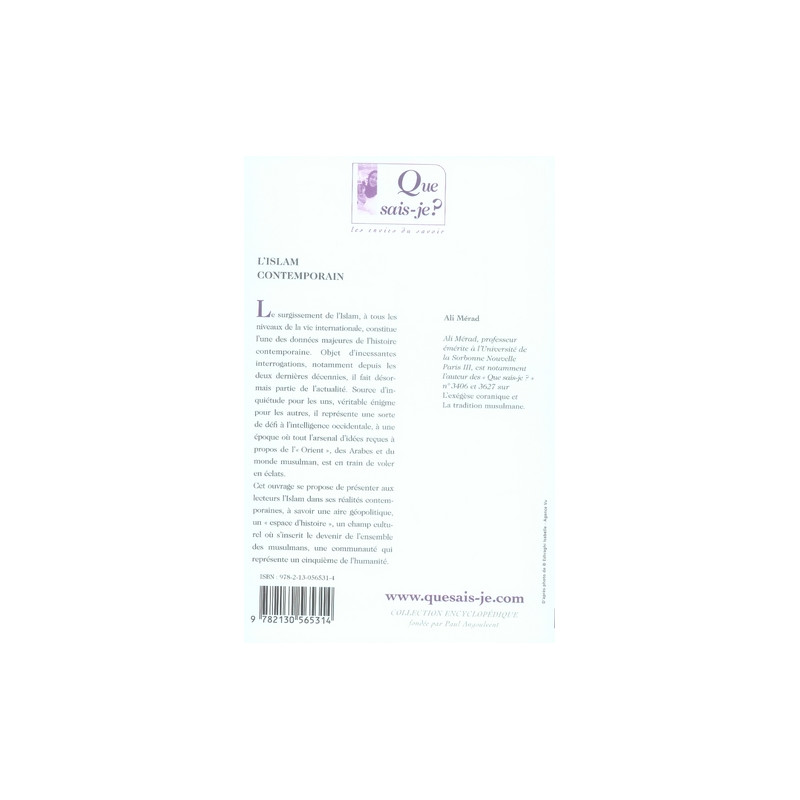 Le surgissement de l'Islam, à tous les niveaux de la vie internationale, constitue l'une des données majeures de l'histoire contemporaine. Objet d'incessantes interrogations, notamment depuis les deux dernières décennies, il fait désormais partie de l'actualité. Source d'inquiétude pour les uns, véritable énigme pour les autres, il représente une sorte de défi à l'intelligence occidentale, à une époque où tout l'arsenal d'idées reçues à propos de l' " Orient ", des Arabes et du monde musulman, est en train de voler en éclats. Cet ouvrage se propose de présenter aux lecteurs l'Islam dans ses réalités contemporaines, à savoir une aire géopolitique, un " espace d'histoire ", un champ culturel où s'inscrit le devenir de l'ensemble des musulmans, une communauté qui représente un cinquième de l'humanité.