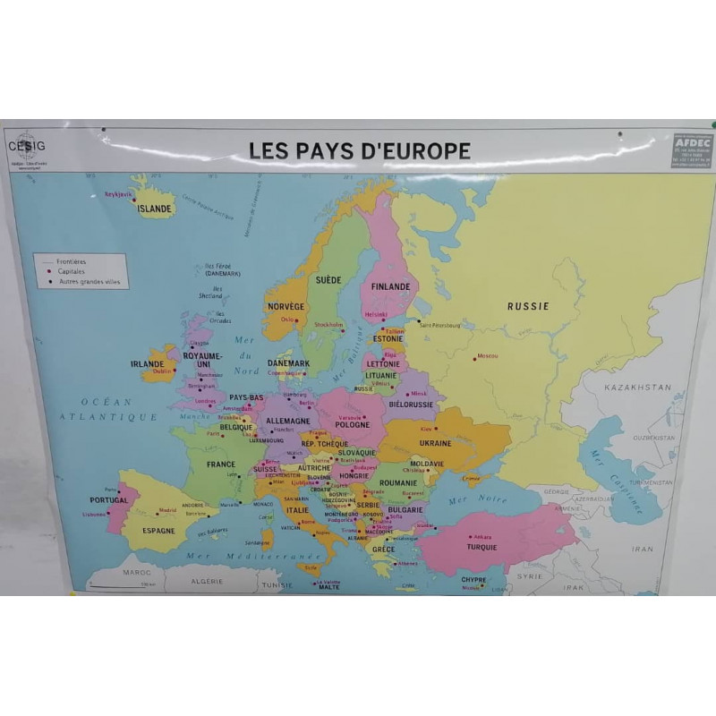Carte murale de l'Europe -administrative et relief gf