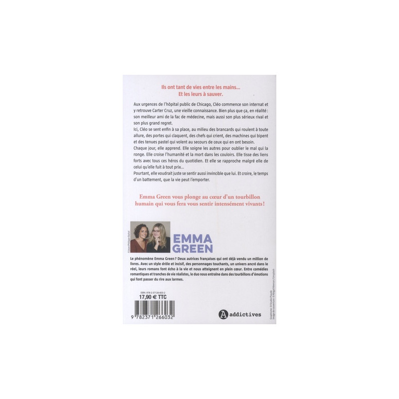 Ils ont tant de vies entre les mains... Et les leurs à sauver. Aux urgences de l'hôpital public de Chicago, Cléo commence son internat et y retrouve Carter Cruz, une vieille connaissance. Bien plus que ça, en réalité : son meilleur ami de la fac de médecine, mais aussi son plus sérieux rival et son plus grand regret. Ici, Cléo se sent enfin à sa place, au milieu des brancards qui roulent à toute allure, des portes qui claquent, des chefs qui crient, des machines qui bipent et des tenues pastel qui volent au secours de ceux qui en ont besoin.