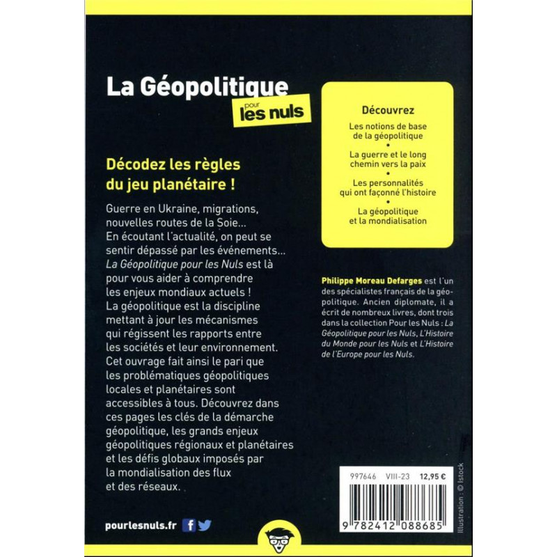 Décodez les règles du jeu planétaire ! Guerre en Ukraine, migrations, nouvelles routes de la Soie... En écoutant l'actualité, on peut se sentir dépassé par les événements... La Géopolitique pour les Nuls est là pour vous aider à comprendre les enjeux mondiaux actuels ! La géopolitique est la discipline mettant à jour les mécanismes qui régissent les rapports entre les sociétés et leur environnement.
