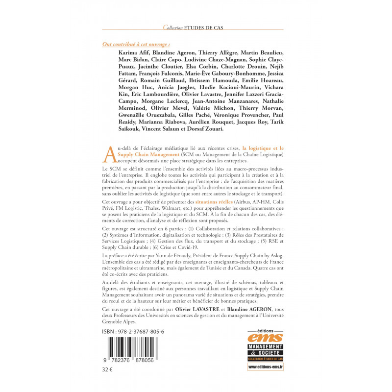 La préface a été écrite par Yann de Féraudy, Président de France Supply Chain by Aslog. L'ensemble des cas a été rédigé par des enseignants et enseignants-chercheurs de France métropolitaine et ultramarine, mais également de Tunisie et du Canada. Quatre cas ont été co-écrits avec des praticiens. Au-delà des étudiants et enseignants, cet ouvrage, illustré de schémas, tableaux et figures, est également destiné aux personnes travaillant en logistique et Supply Chain Management souhaitant avoir un panorama varié de situations et de stratégies, prendre du recul et de la hauteur sur leur métier et bénéficier de bonnes pratiques.