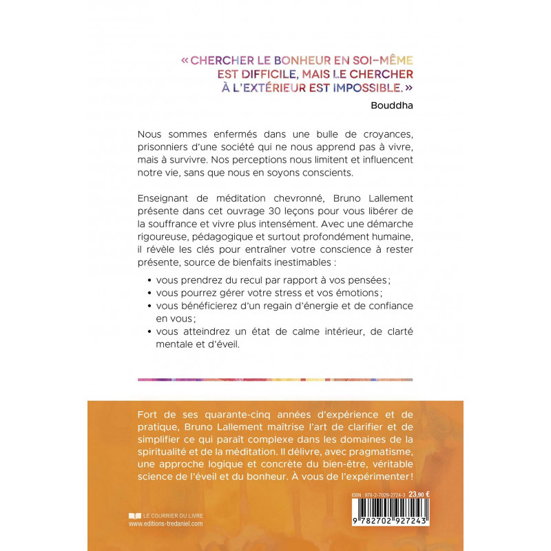 L'ouvrage est construit comme un cours en trois niveaux : Dans le niveau 1, le lecteur apprendra les bases de la méditation (observation des pensées et des émotions, conscience des sensations corporelles). Dans le niveau 2, il développera des antidotes pour faire face aux situations anxiogènes et une nouvelle posture mentale favorable à son épanouissement. Dans le niveau 3, il explorera une nouvelle philosophie de vie, notamment inspirée du bouddhisme, et la vraie nature de son esprit.