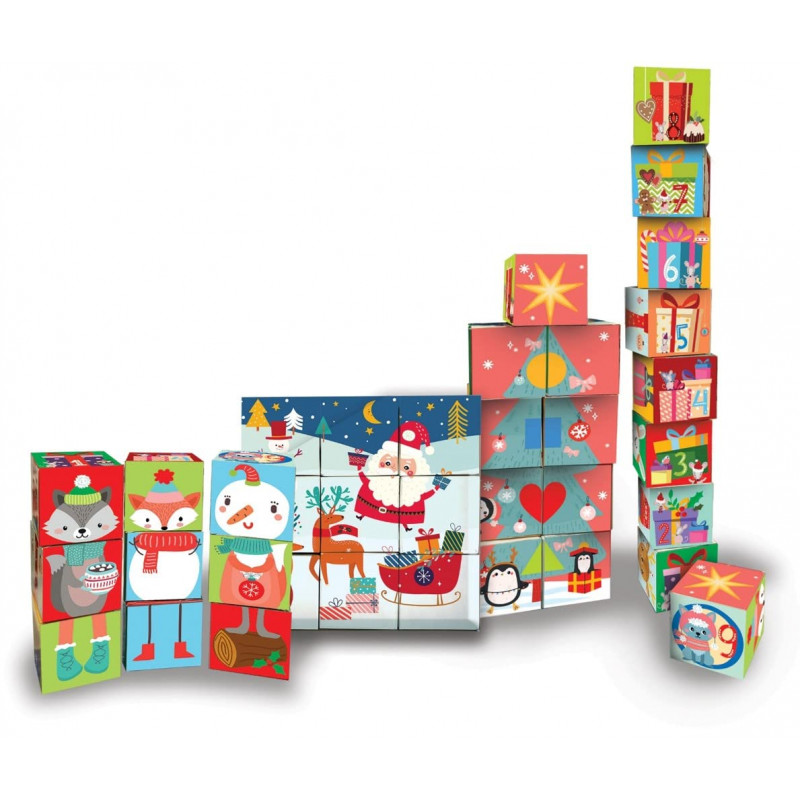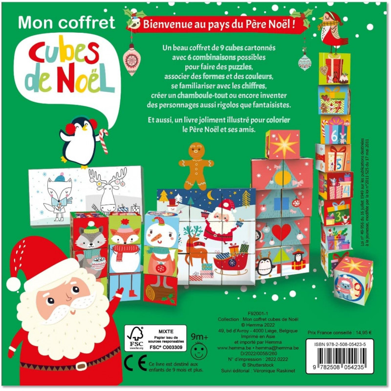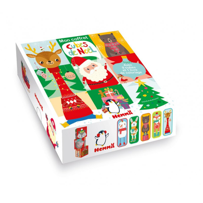 Manipuler, imaginer, associer, empiler... et faire tomber ! Avec le jeu de cubes, le tout-petit comprend que son geste donne un résultat. Quel plaisir ! Plus encore quand il s'agit de s'amuser avec le Père Noël, ses rennes et ses lutins. Un joli coffret de 9 cubes cartonnés et 6 combinaisons différentes pour faire des puzzles, créer un chamboule-tout, associer des moitiés ou encore imaginer des personnages fantaisistes...