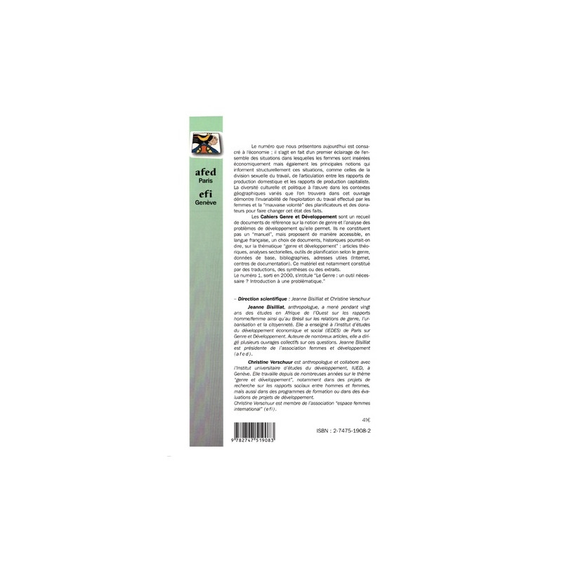 Un premier éclairage de l'ensemble des situations dans lesquelles les femmes sont insérées économiquement mais également les principales notions qui informent structurellement ces situations comme celles de la division sexuelle du travail, de l'articulation entre les rapports de production domestique et les rapports de production capitaliste. Malgré la diversité culturelle et politique dans des contextes géographiques variés, on constate l'invariabilité de l'exploitation du travail des femmes.