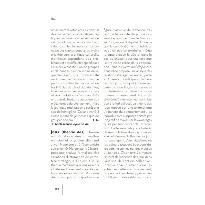 L'ouvrage comprend également une soixantaine de monographies sur les principaux auteurs français et étrangers de la discipline. Il est complété par une abondante bibliographie. Une synthèse claire et un panorama complet des grandes notions de la sociologie.