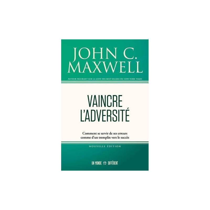 Dans "Vaincre l'adversité", John C. Maxwell vous montrera : - les principales raisons pour lesquelles les gens échouent ; - comment maîtriser la peur au lieu d'être maîtrisé par elle ; - les aspects positifs qui peuvent accompagner les expériences négatives. Rempli de suggestions d'actions et de propositions pertinentes de la vie réelle, "Vaincre l'adversité" est un guide stratégique qui vous aidera à vous servir de vos erreurs pour réaliser votre potentiel et à prendre l'engagement de faire tout ce qu'il faut pour atteindre le succès.
