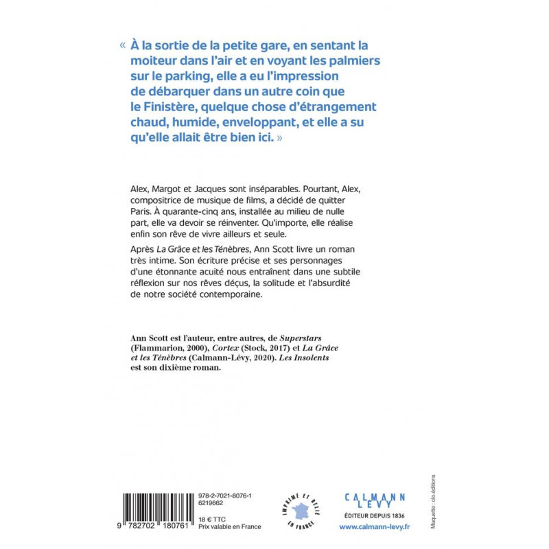"A la sortie de la petite gare, en sentant la moiteur dans l'air et en voyant les palmiers sur le parking, elle a eu l'impression de débarquer dans un autre coin que le Finistère, quelque chose d'étrangement chaud, humide, enveloppant, et elle a su qu'elle allait être bien ici". Alex, Margot et Jacques sont inséparables. Pourtant, Alex, compositrice de musique de films, a décidé de quitter Paris. A quarante-cinq ans, installée au milieu de nulle part, elle va devoir se réinventer.