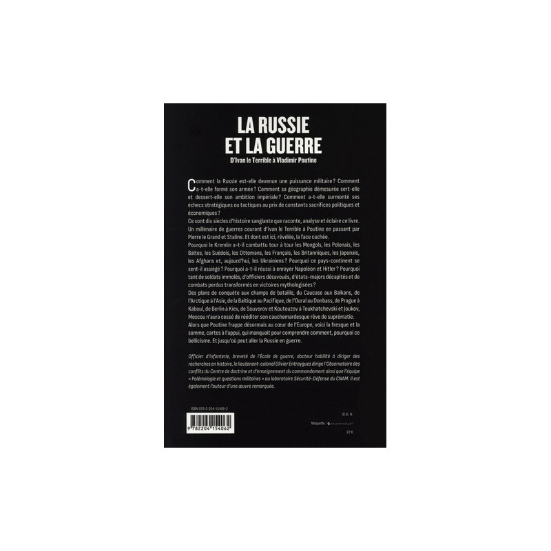 Comment la Russie est-elle devenue une puissance militaire ? Comment a-t-elle formé son armée ? Comment sa géographie démesurée sert-elle et dessert-elle son ambition impériale ? Comment a-t-elle surmonté ses échecs stratégiques ou tactiques au prix de constants sacrifices politiques et économiques ? Ce sont dix siècles d'histoire sanglante que raconte, analyse et éclaire ce livre. Un millénaire de guerres courant d'Ivan le Terrible à Poutine en passant par Pierre le Grand et Staline.