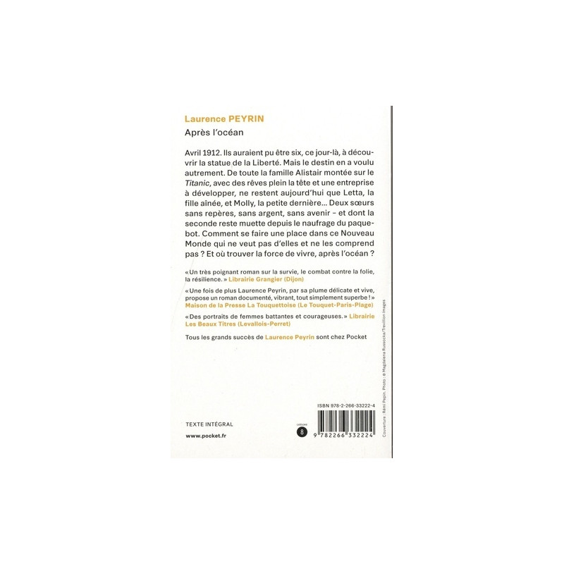 En ce printemps 1912, parmi d'autres naufragés hagards tirés de l'océan, Letta Alistair, 24 ans, serre contre elle sa petite sœur Molly en regardant...